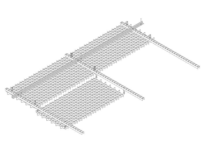 Le design unique du plafond ouvert QUADRA-N créé une ambiance dynamique. Ce plafond alvéolaire simple peau est disponible en plusieurs finitions et dimensions de cellules, ce qui permet la création d’ambiance unique.
